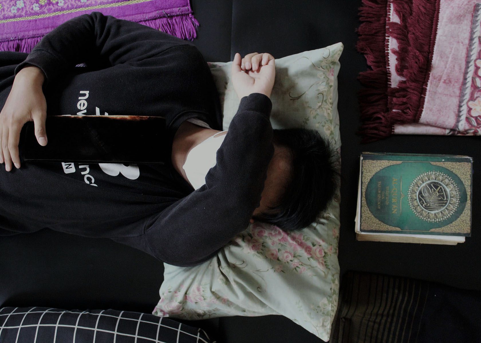 “Suka tidur di masjid. Abis kegiatan abis sholat, atau abis madrasah, ikut beristirahat di masjid.”