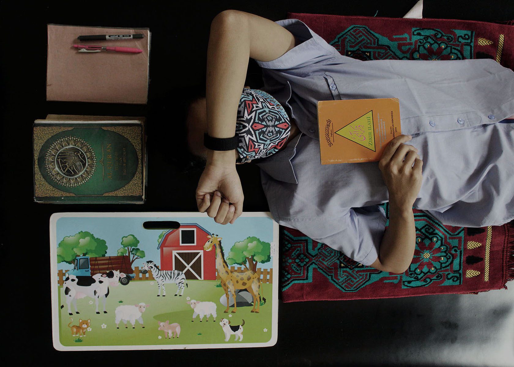Lain halnya dengan Indra (bukan nama sebenarnya) yang gemar belajar dan mengikuti madrasah. Madrasah adalah sekolah keagamaan yang diadakan pada akhir pekan.