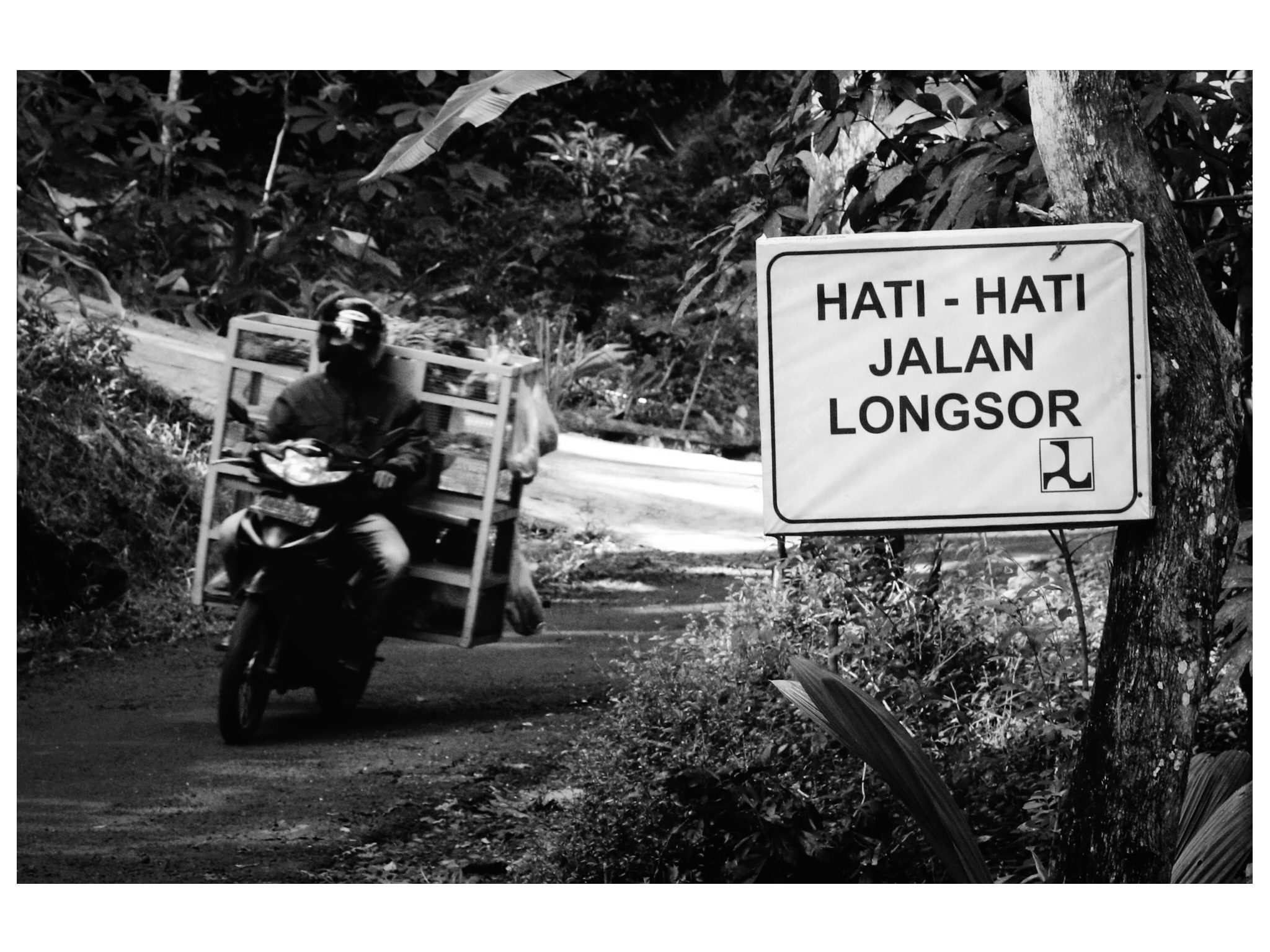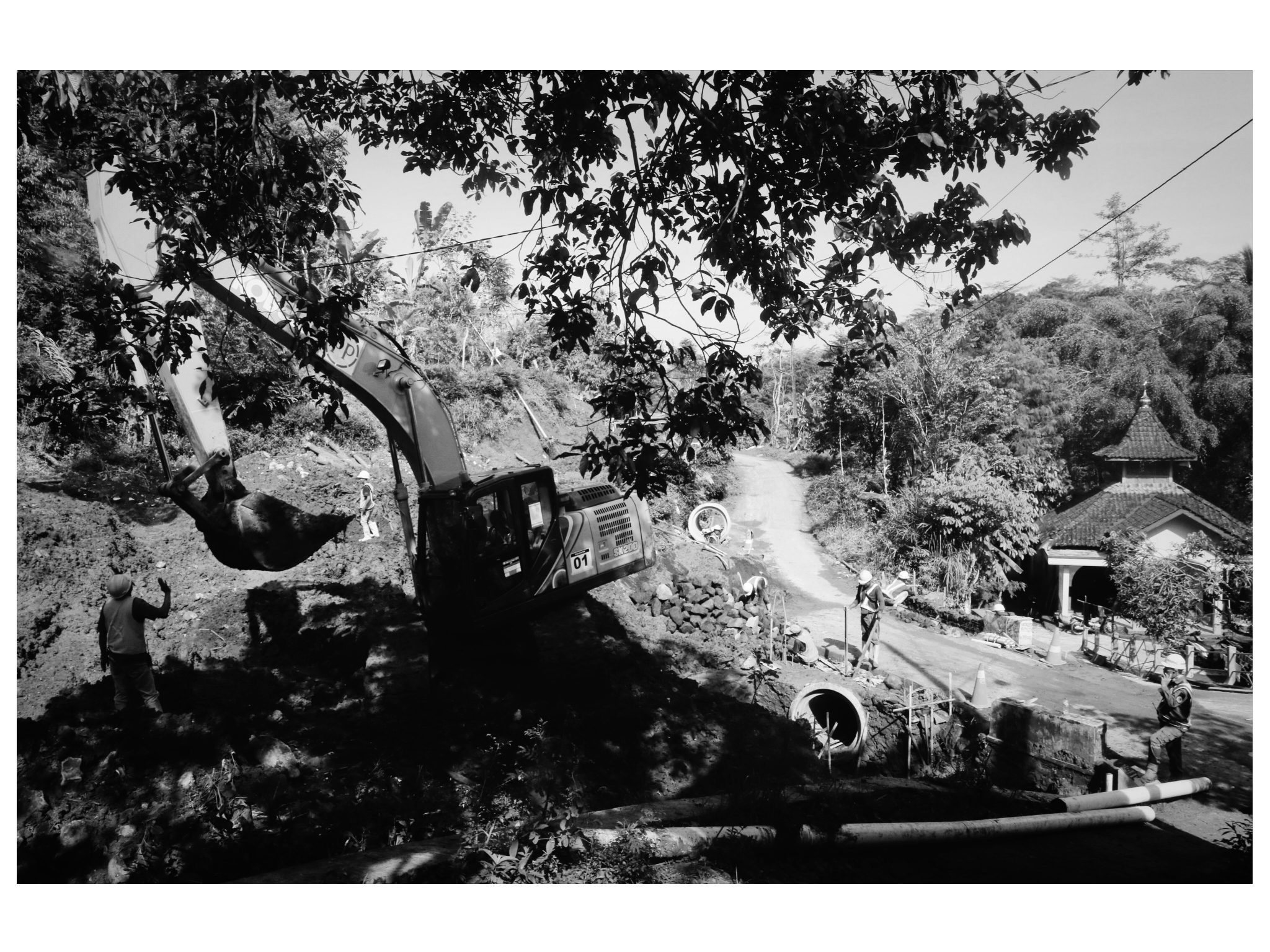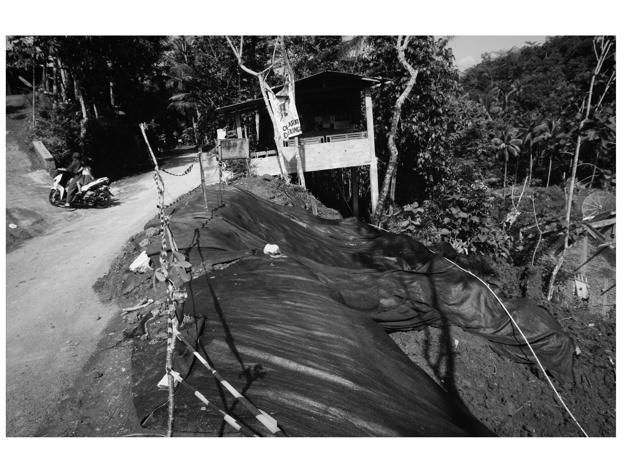 Sejak pagi sejumlah pekerja sudah sudah sibuk memasang saluran air dari beton di persimpangan jalan menuju tambang batu andesit di Wadas, Purworejo, Jawa Tengah. Pemandangan di sana sudah berubah. Dulu masih banyak pepohonan yang tumbuh di tebing tak jauh dari lokasi para pekerja. Namun kini pohon-pohon itu sudah diganti terpal hitam menutupi tebing untuk mengurangi risiko tanah longsor. Plang peringatan bahaya longsor jadi pemandangan baru beberapa tempat.