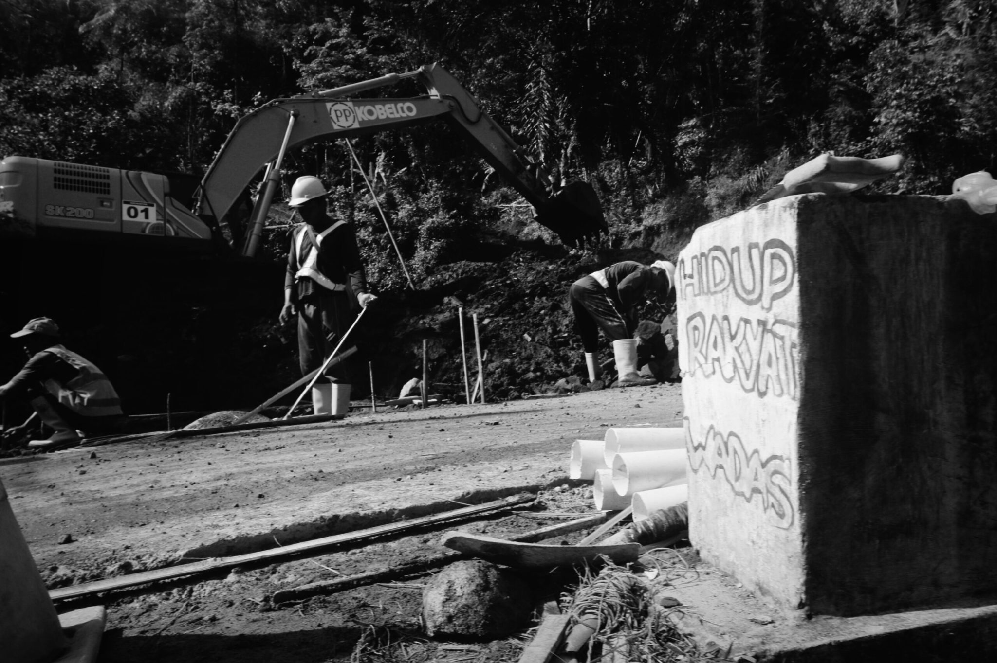 Sejak pagi sejumlah pekerja sudah sudah sibuk memasang saluran air dari beton di persimpangan jalan menuju tambang batu andesit di Wadas, Purworejo, Jawa Tengah. Pemandangan di sana sudah berubah. Dulu masih banyak pepohonan yang tumbuh di tebing tak jauh dari lokasi para pekerja. Namun kini pohon-pohon itu sudah diganti terpal hitam menutupi tebing untuk mengurangi risiko tanah longsor. Plang peringatan bahaya longsor jadi pemandangan baru beberapa tempat.