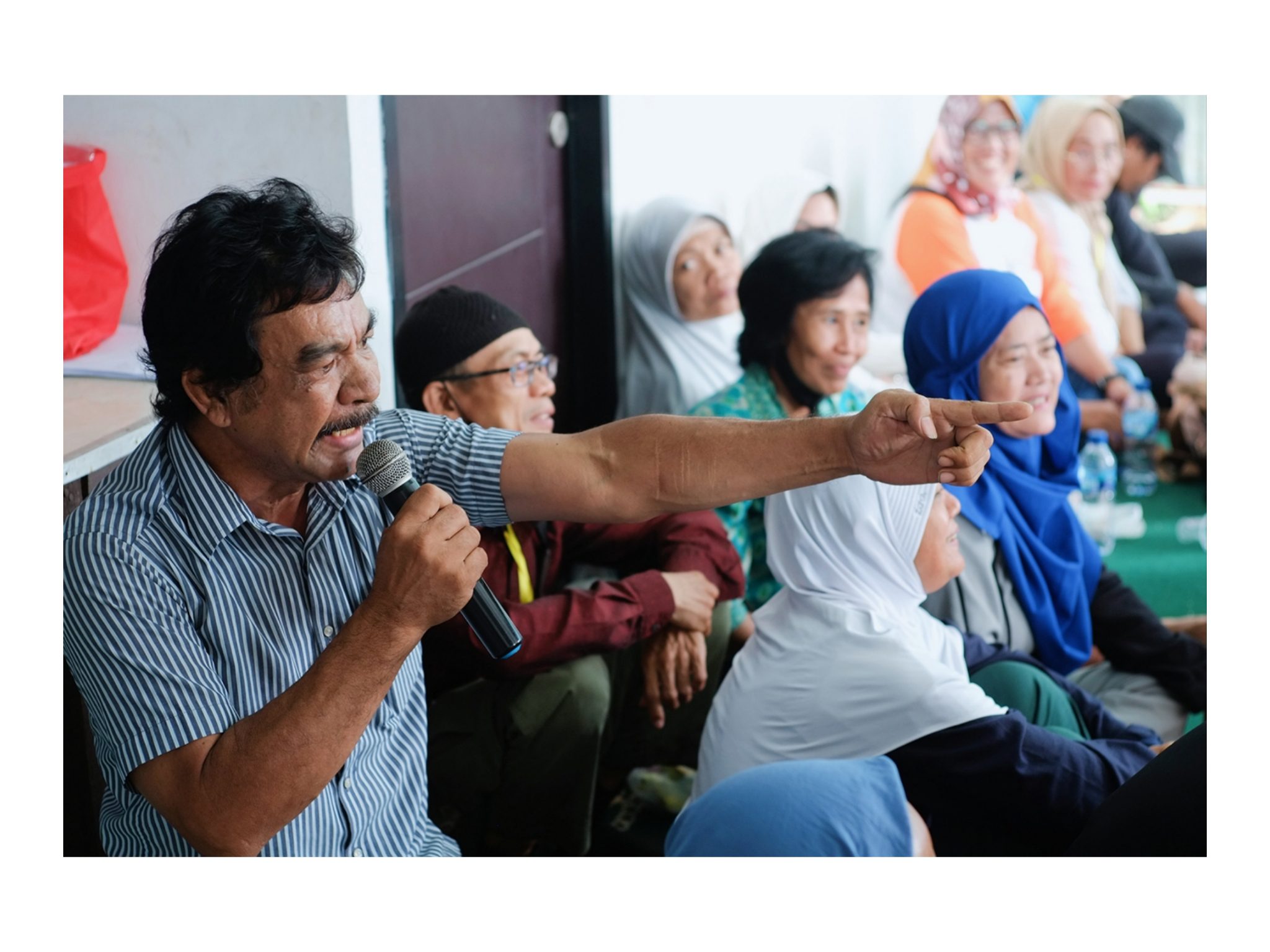 Seorang warga memberi tanggapan atas gagasan seorang bakal calon legislatif . (Project M/Adrian Mulya)