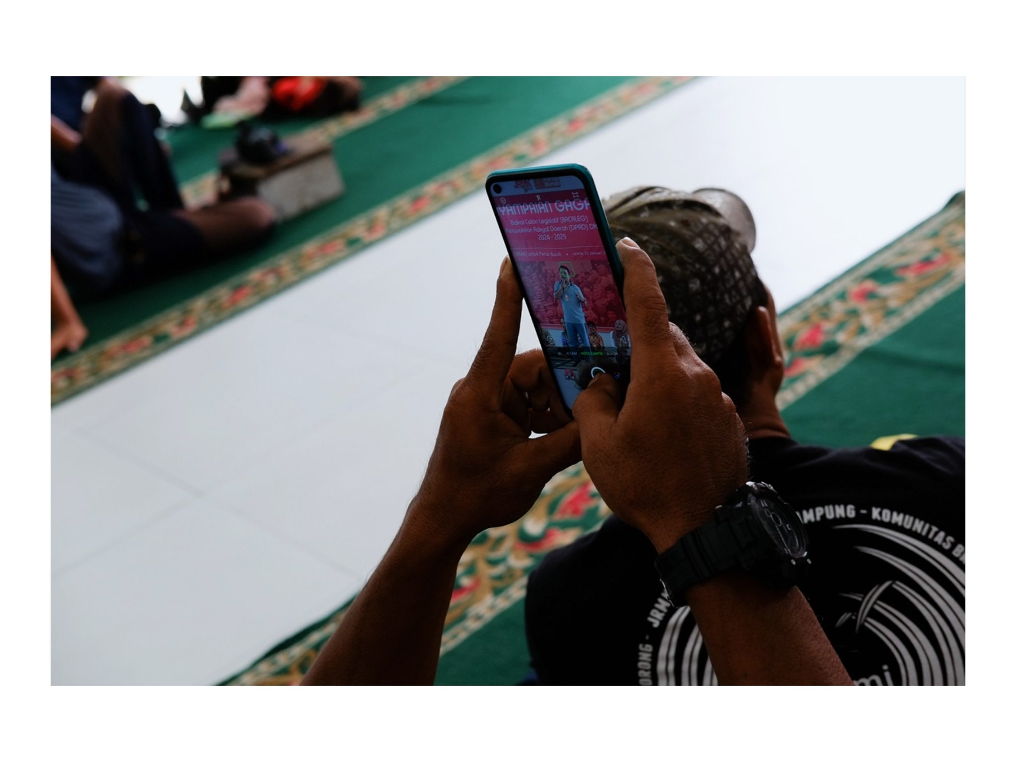 Seorang warga memotret salah satu bakal calon legislatif yang sedang memaparkan dan gagasannya. (Project M/Adrian Mulya)