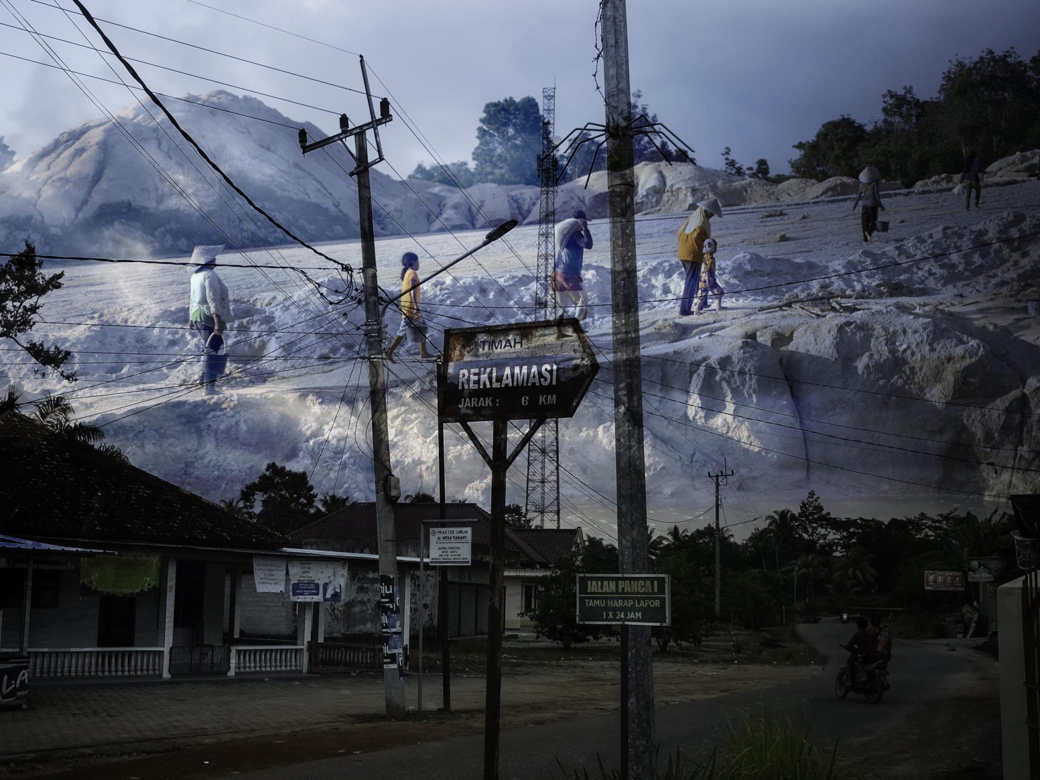 Cerita foto ini adalah refleksi fotografer kepada kampung halaman keluarganya di Kabupaten Bangka, Bangka Belitung yang mengalami kerusakan lingkungan akibat aktivitas penambangan timah. Dengan menggunakan teknik manipulasi foto overlay atau berlapis, saya membayangkan dua sisi timah bagaimana ia membangun sekaligus merusak kehidupan.