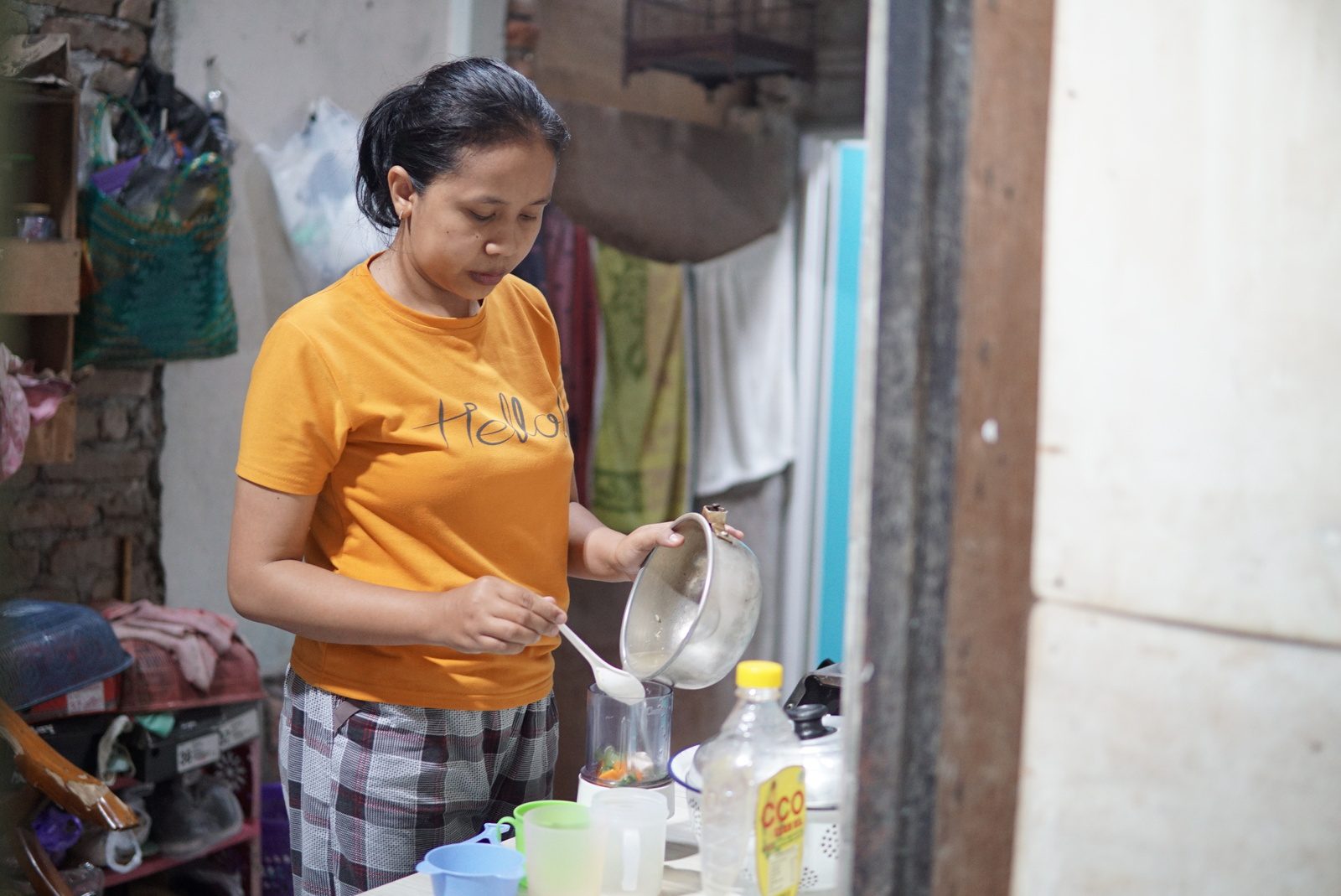 Kamti dan suami tinggal di rumah sederhana milik orang tua Kamti bersama adiknya. Suami Kamti bekerja sebagai petugas kebersihan berstatus kontrak di rumah sakit. Untuk membantu menambal kebutuhan sehari-hari, Kamti bekerja menjadi tenaga dapur di salah satu rumah makan di dekat rumahnya.