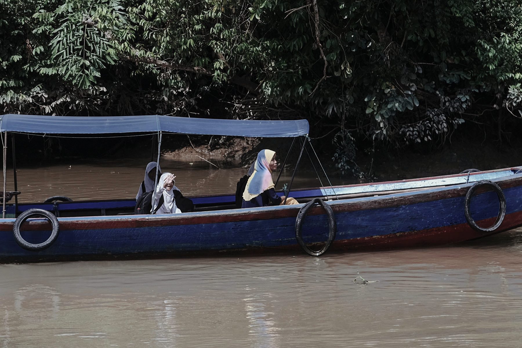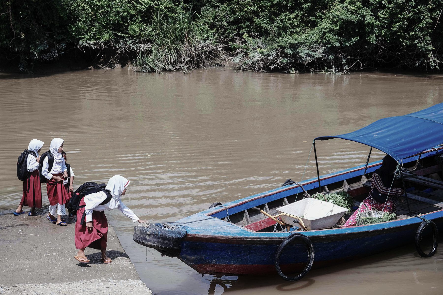 Bagi sejumlah murid, transportasi sungai merupakan akses tersingkat antara rumah dan sekolah. (Project M/Prabu Rizki)