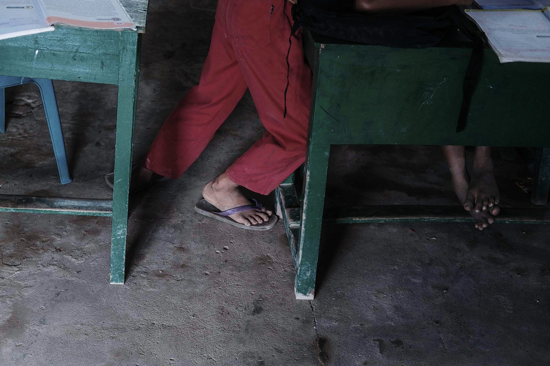 Tidak semua murid mengenakan sepatu. Kondisi perekonomian warga desa umumnya tidak mampu. (Project M/Prabu Rizki)