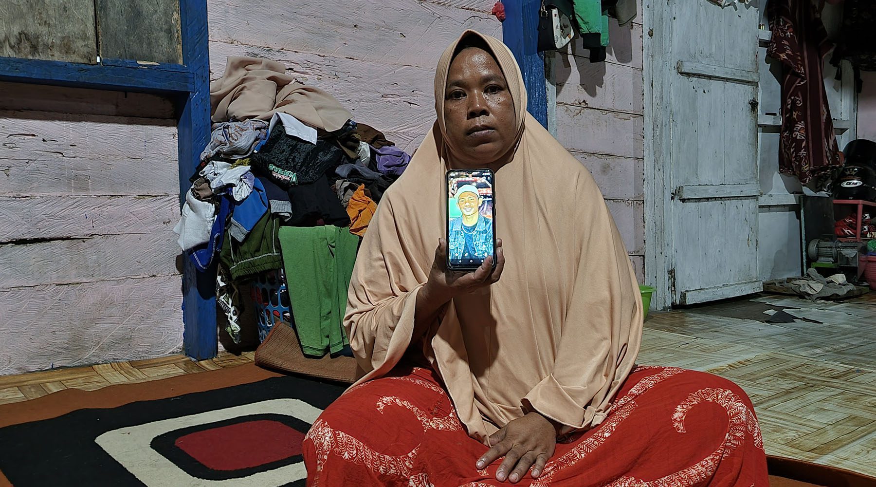 Mulyati, 40 years old, shows a photo of Jumardin, her second child who is the backbone of the family. Jumardin worked in the smelter division of PT GNI, North Morowali, Central Sulawesi. Jumardin was one of the workers who were arrested and detained by the Indonesian Police following a strike that led to clashes between Indonesian and Chinese workers on January 14, 2023. (Project M/Muammar Fikrie)