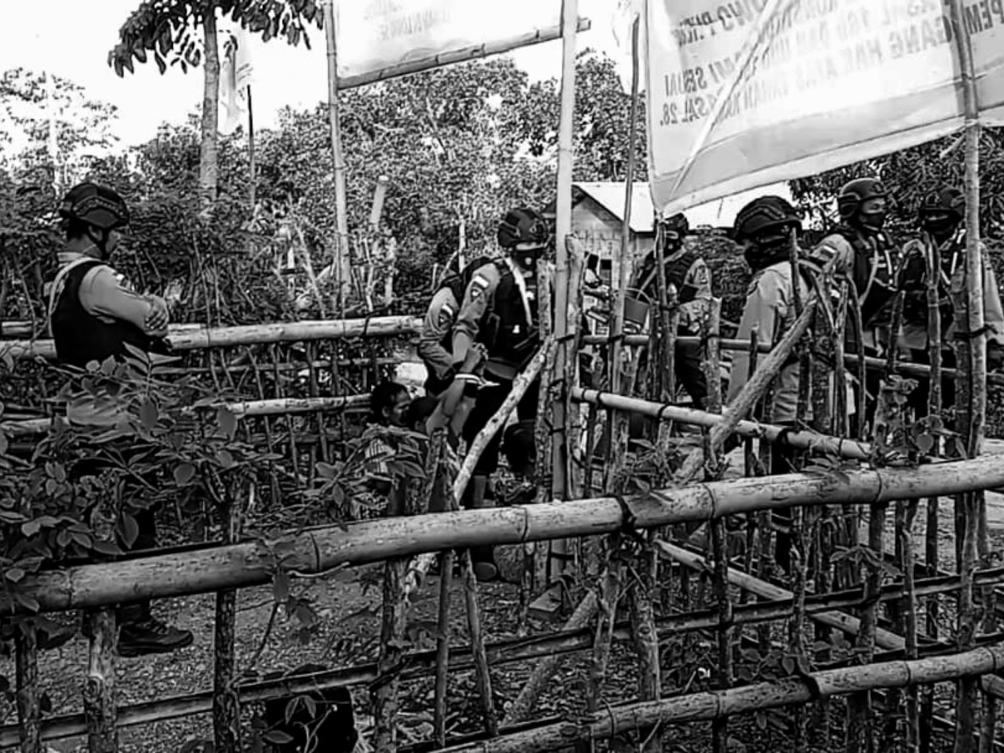 That afternoon, at least five Brimob members escorted surveyors measuring indigenous people’s land in Nagekeo Regency on Flores Island, East Nusa Tenggara (NTT). The site of Lowo Se in Rendubutowe Village is the center of the Lambo Dam project, which then-President Joko Widodo designated as a National Strategic Project (PSN) in 2015. It is also known as the Mbay Dam, after the capital of Nagekeo.