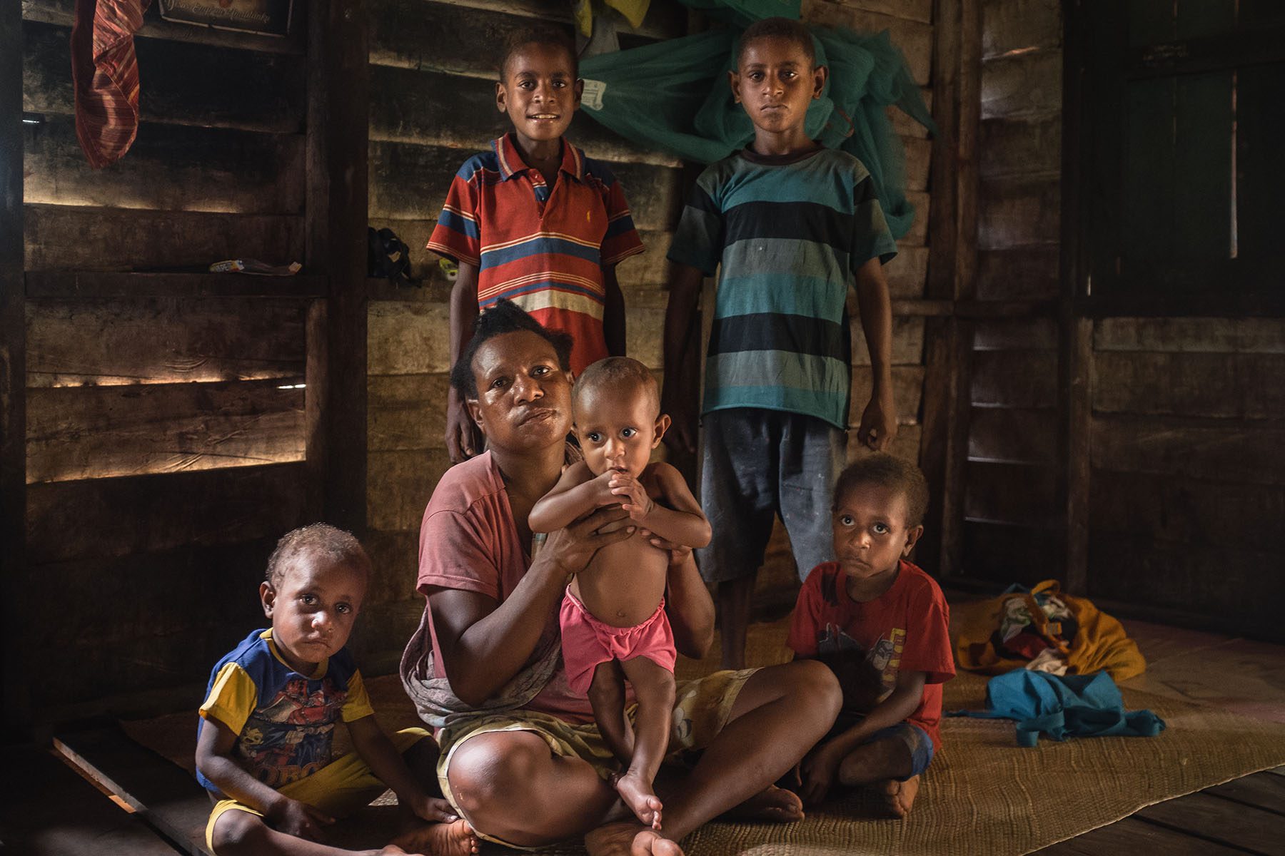 Natalia Mahuze and her five sons. Two of them were malnourished as of April 2022. One was stunted and received supplementary food from local health workers. (Source: The Gecko Project/Albertus Vembriyanto)