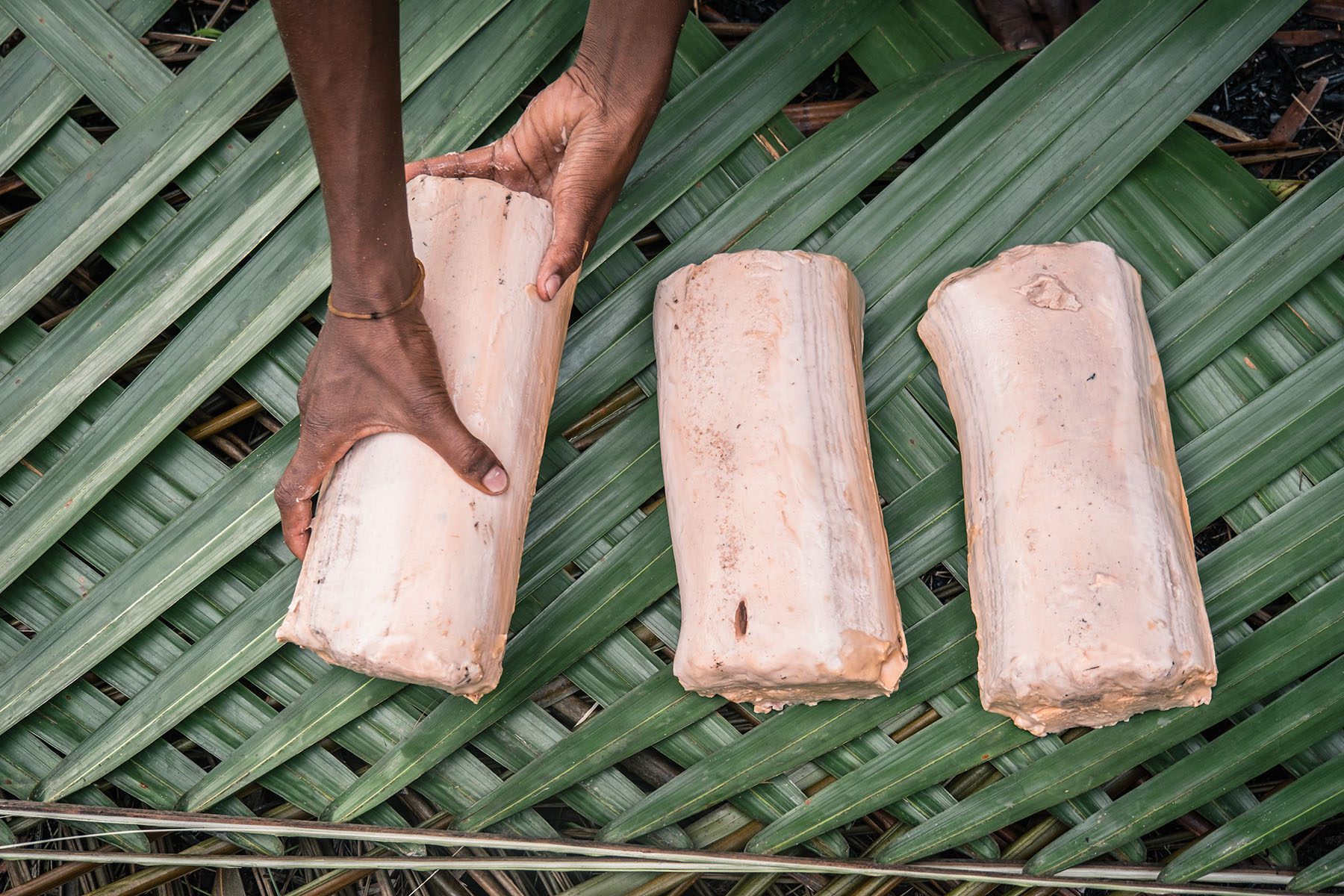 Sago is traditionally the main staple for the Marind living in Zanegi, but now children and teenagers prefer to eat rice. Sago grows in palms that have to be laboriously processed to extract the edible starch.  (Source: The Gecko Project/Albertus Vembriyanto)