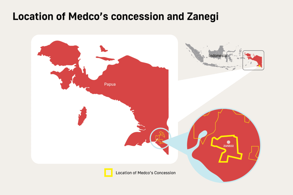 Medco obtained a licence for some 170,000 hectares of land, overlapping substantially with the ancestral territory of indigenous Marind people living in a village named Zanegi. The Marind source game, fish and sago – their staple foods – from the forests and swamps north of Zanegi.