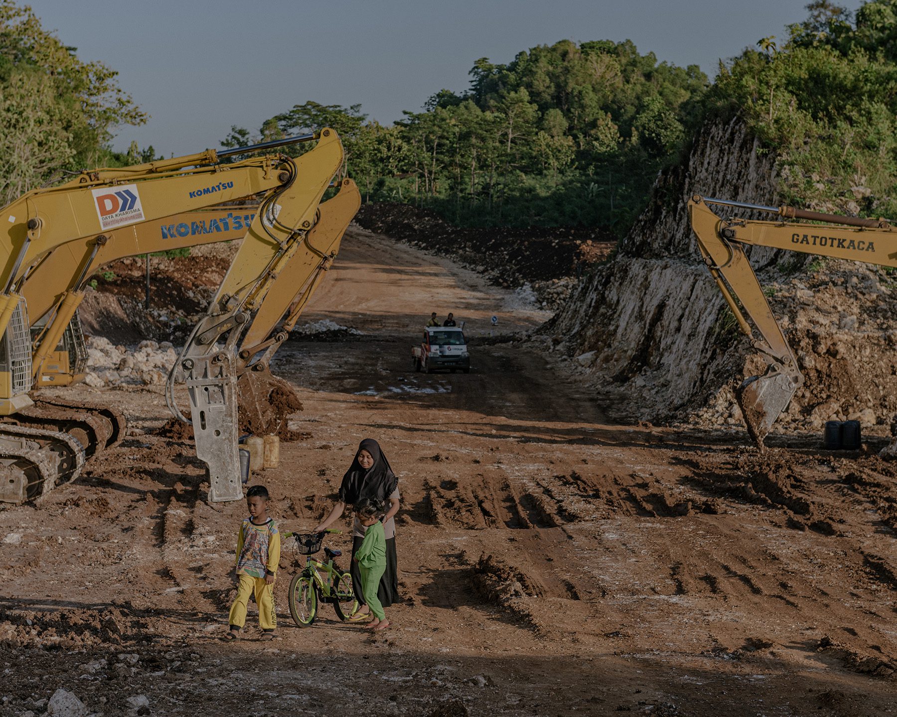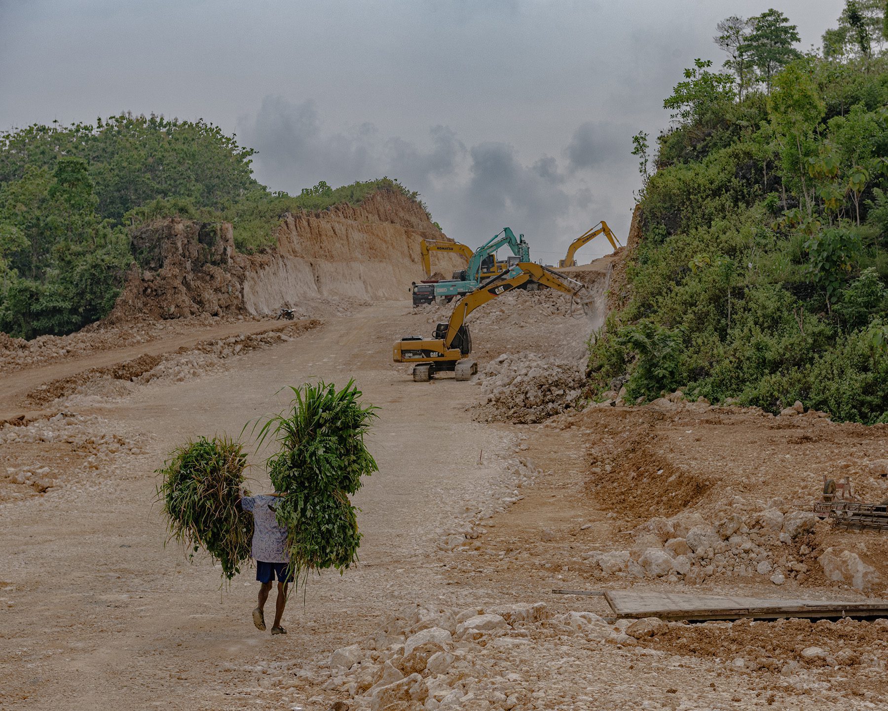 Now, among the rocks and earth that have been dug out along the JJLS route, the locals still go about their daily lives. They can still be seen going to the field every morning, farming, trading in their hawker stalls by the coast, and gathering in the evening.