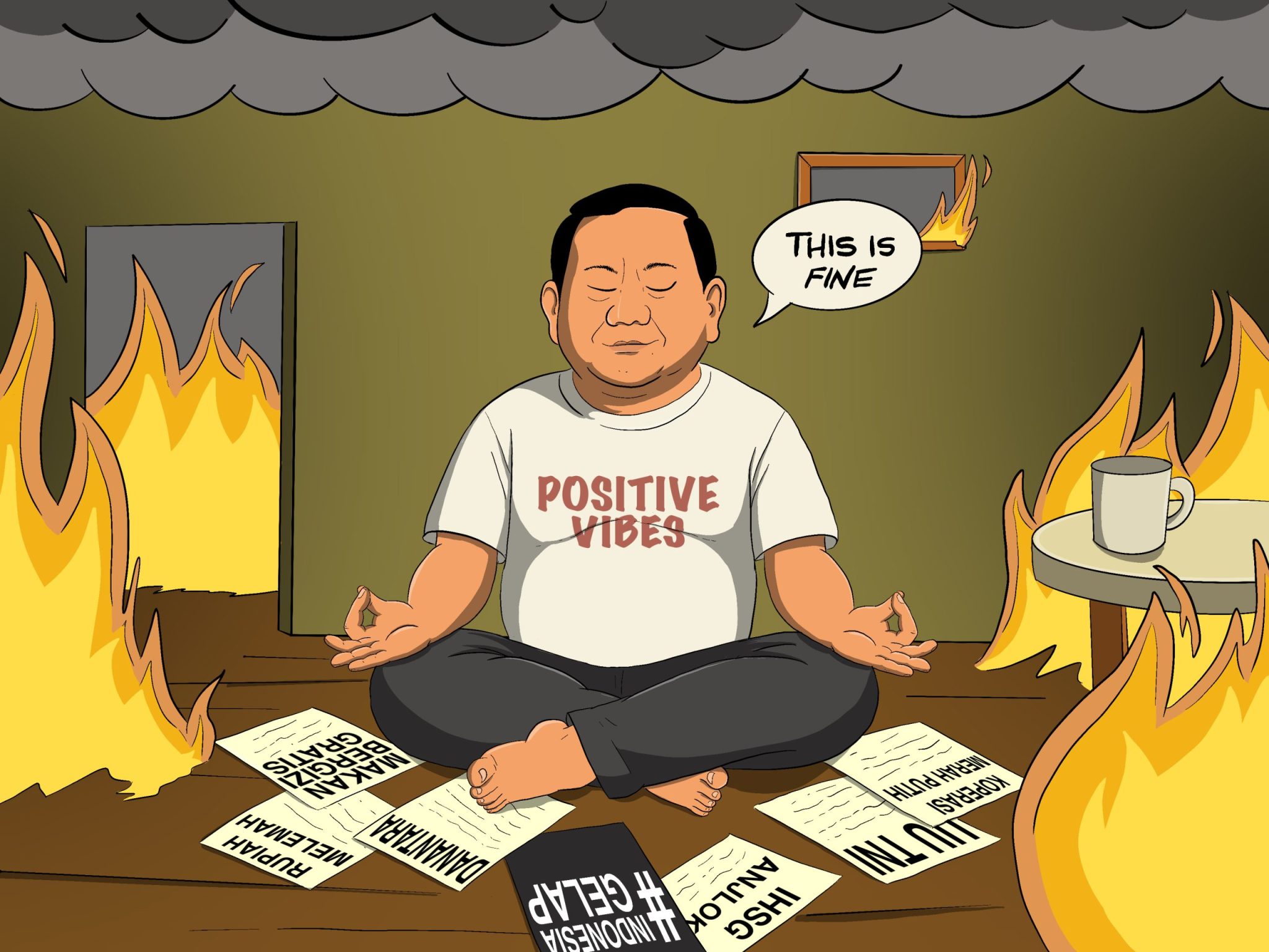 Ilustrasi Prabowo menanggapi reaksi masyarakat sipil terhadap program pemerintahannya. (Project M/Aan K. Riyadi)