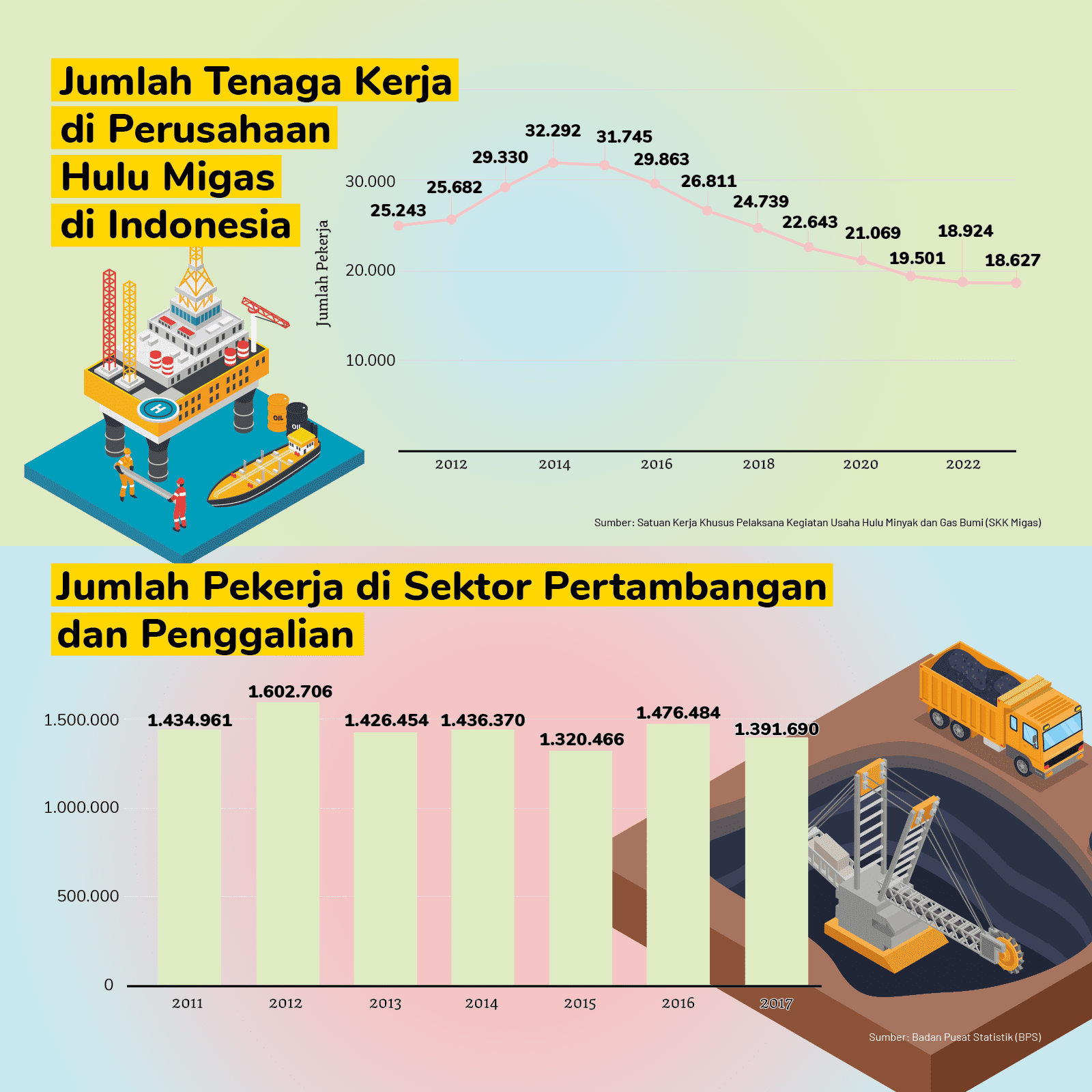 Infografik jumlah tenaga kerja di sektor industri fosil. (Project M/Zulfikar Arief)