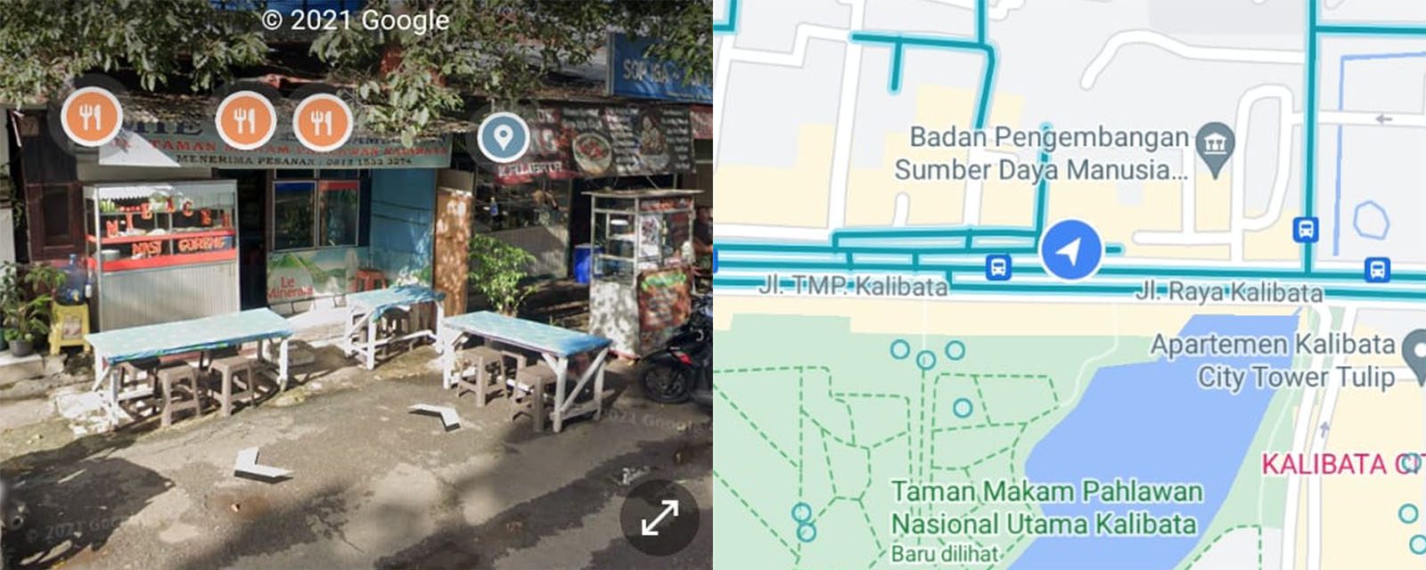 Lokasi pertemuan Sudin dengan salah satu atasan dari penyidik Satgas TPPO di sebuah warung makan di dekat TMP Kalibata, Jakarta. (Sumber: Google)