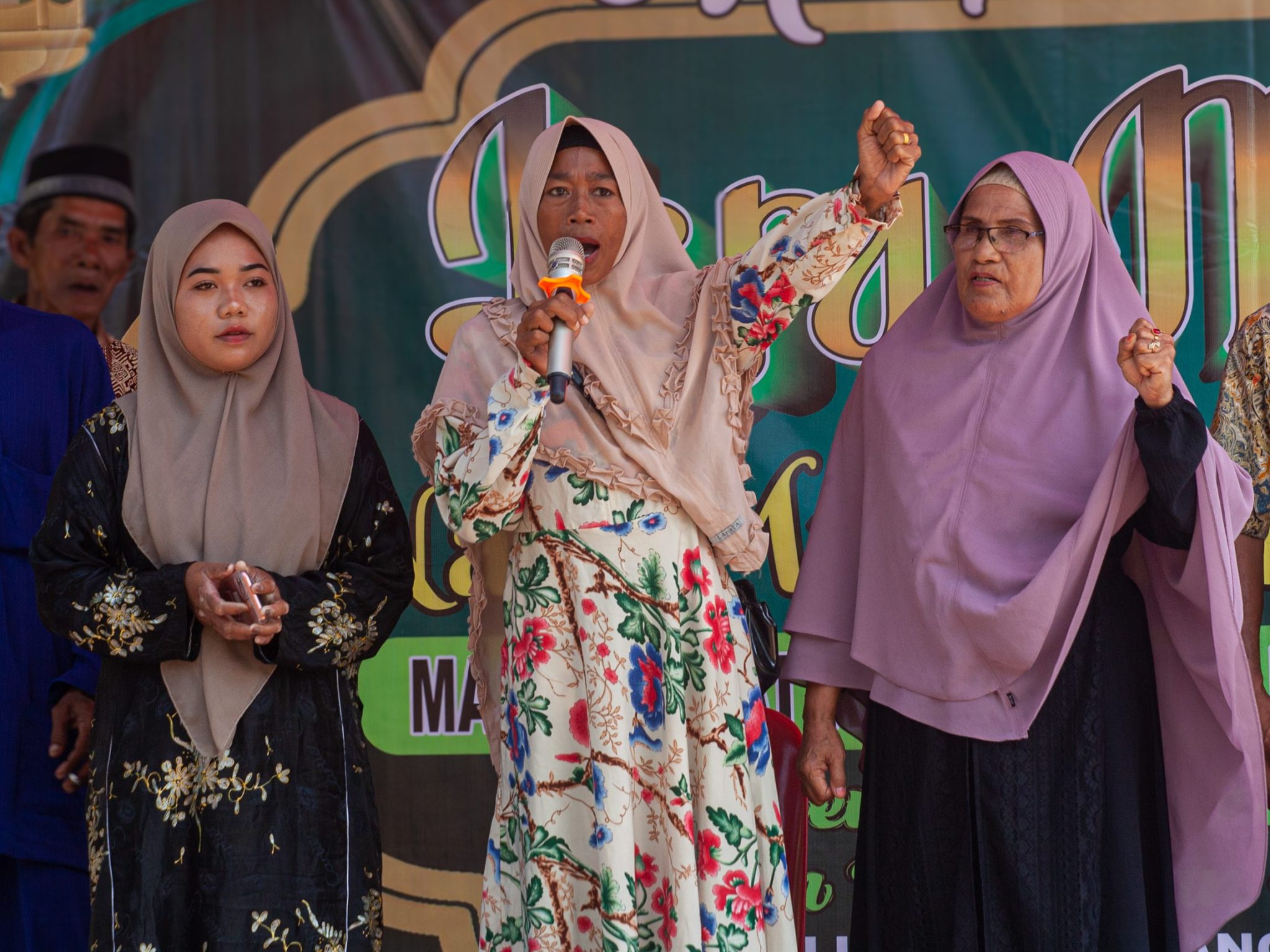 Setelah menyelesaikan seluruh rangkaian acara, Nia melangkah tertatih-tatih sambil menggenggam erat tangan Siti Hawa yang membantunya naik ke atas panggung. Nia menyampaikan pesan perjuangan untuk terus mempertahankan Rempang, sebab konflik ini masih jauh dari selesai.