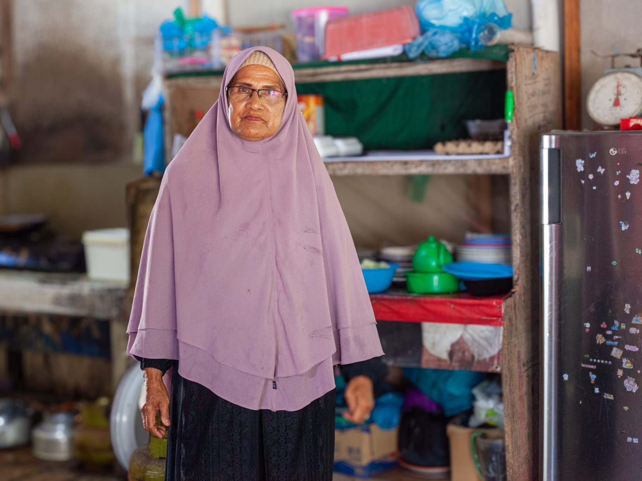 Perempuan yang sehari-hari berjualan makanan di samping rumahnya di Kampung Sembulang Pasir Merah ini ingin menunjukkan pada perempuan-perempuan lain di Rempang bahwa jenis kelamin dan usia tak boleh menjadi halangan untuk mempertahankan ruang hidup mereka.