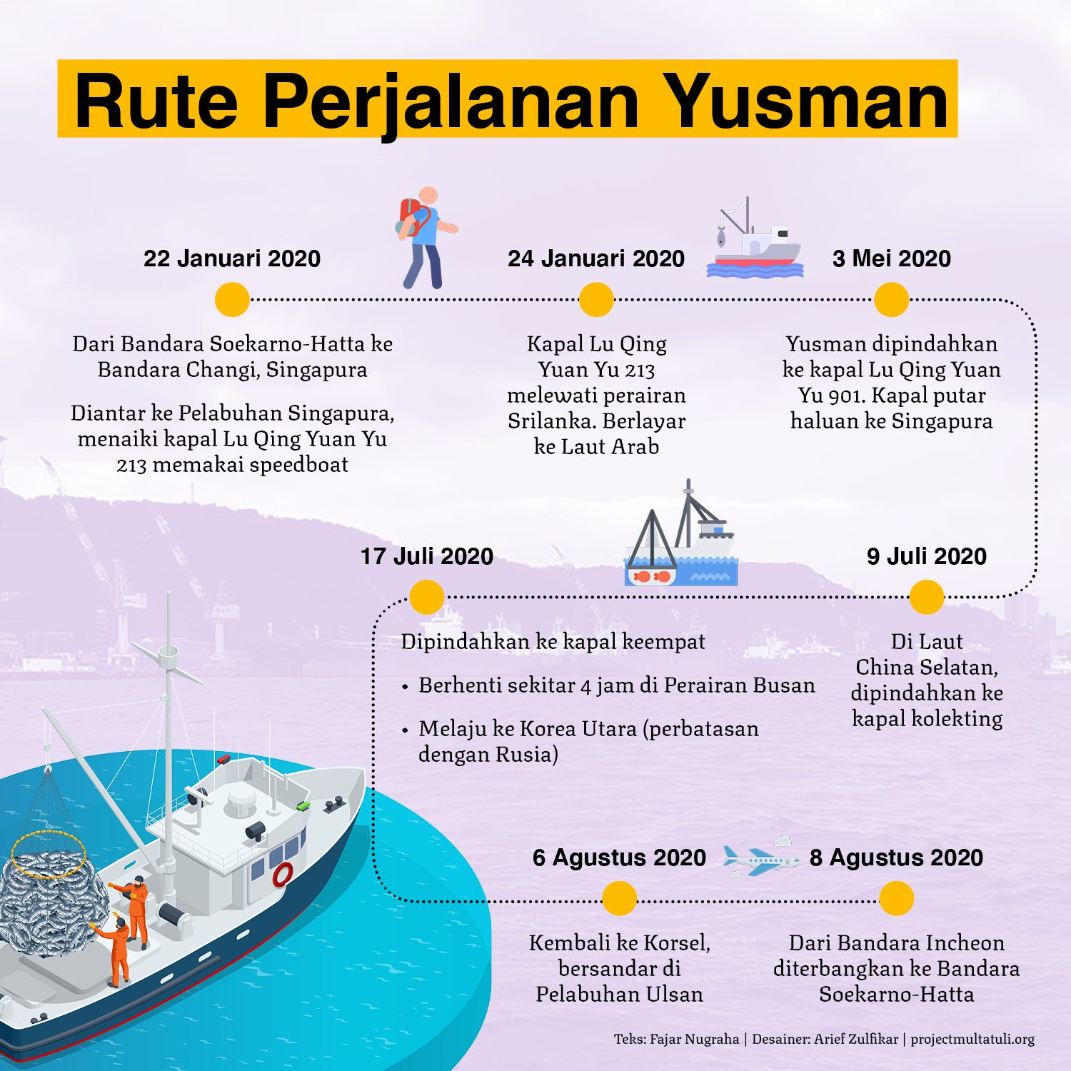 Saya pun baru menyadarinya setelah dia pergi. Dan dia pergi ke mana? Saya sendiri nggak tahu. Jelas, kami ditipu. Tapi kami baru tahu kami ditipu setelah saya tahu Yusman dibawa ke kapal, bukan dijanjikan bekerja di Korea. Bayangan kami, gaji suami saya akan ditransfer dari dia sendiri ke rekening saya. Seperti kamu biasanya bekerja di darat.