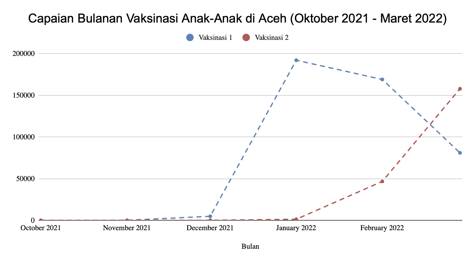 Gelombang vaksinasi anak-anak di Aceh pun meningkat drastis pada bulan Januari 2022. Berdasarkan data Kemenkes, selama sebulan itu ada 192.089 anak-anak yang mendapatkan vaksinasi dosis pertama. Jumlah itu jauh dari pencapaiannya bulan-bulan sebelumnya, misalnya pada Oktober 2021 hanya ada 38 orang, November 164 orang, dan Desember 4.901 orang.