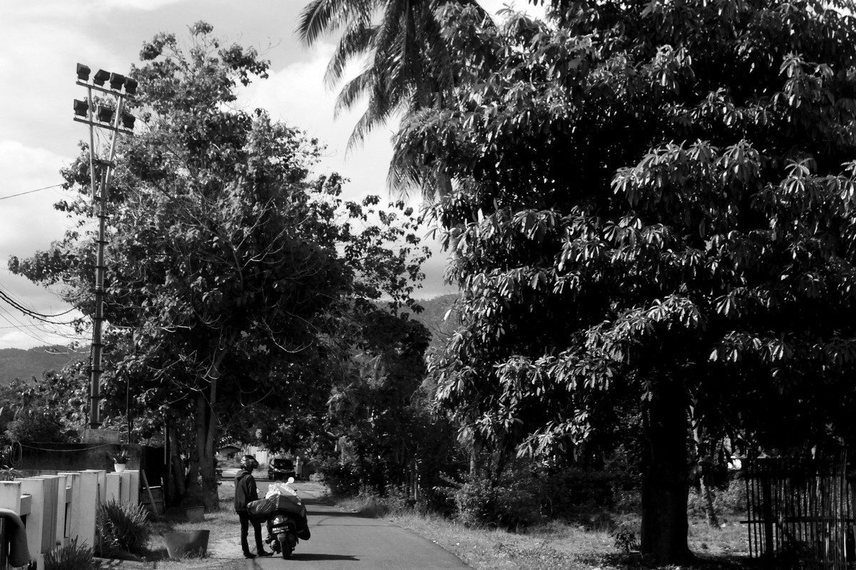 Ia bersedia saya buntuti. Kami berangkat dari depan gerai JNT Bonebolango di Desa Tumbihe, Kecamatan Kabila. Lokasi gerai itu tidak jauh dari pusat perbelanjaan Kota Gorontalo. Saat itu jalan raya sedang ramai-ramainya dengan aktivitas warga yang pergi-pulang belanja. Sementara Rifki sibuk mengantar belanjaan orang lain.