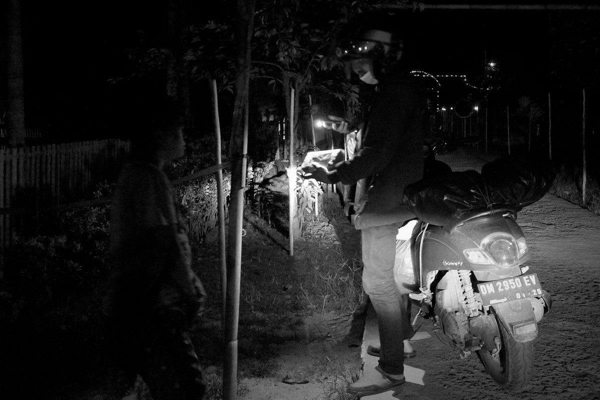 Hari itu Gusnul membawa 39 paket. Wilayah tugasnya di Kecamatan Kota Barat, Kota Gorontalo. Ia memang sering berangkat kerja selepas salat subuh, di waktu siang punya sedikit waktu untuk membantu istrinya jualan makanan siap saji dan gorengan. Kami mengantar semua paket dalam kurun waktu sekitar 3 jam, dan menempuh jarak sekira 25 kilometer (pergi-pulang).