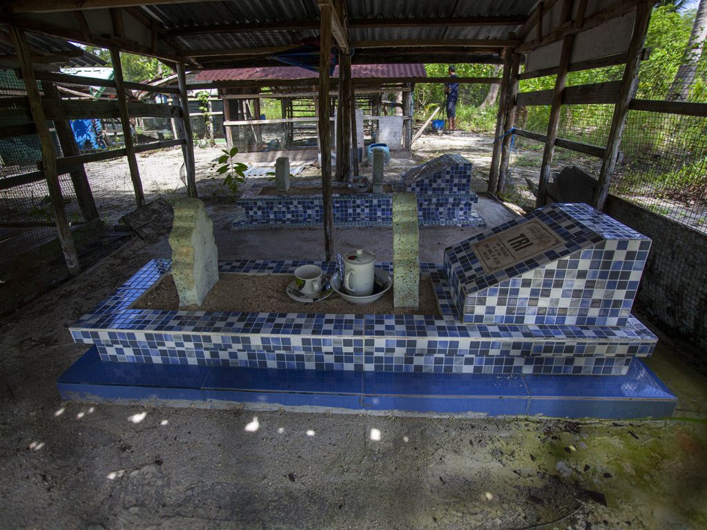 Ada 21 pusara di area itu. Sebagian utuh, sebagian telah empat kali diperbaiki. Perbaikan terakhir dilakukan tahun 1998, milik Atok Rahman, Suku Laut pertama yang dikuburkan di sana.