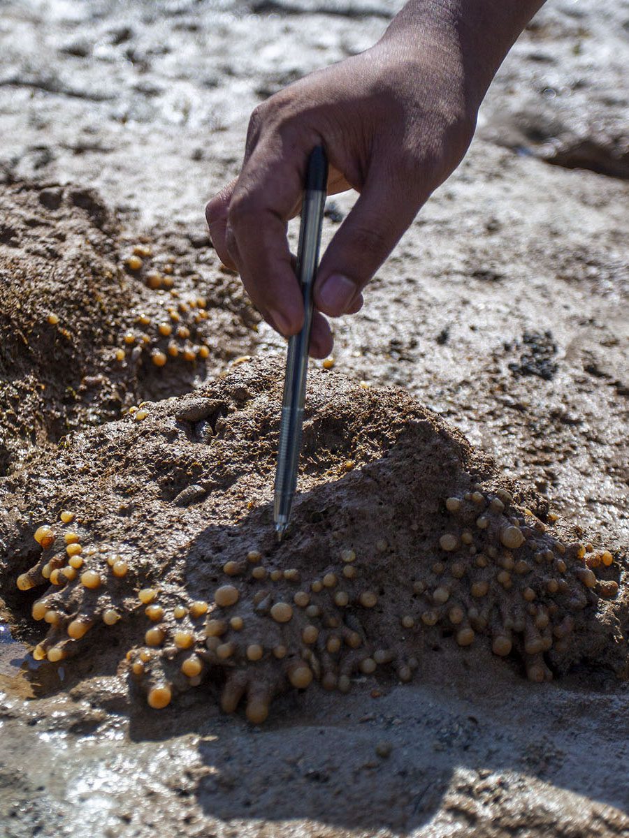 Ketam bangkang kecil yang biasa bersembunyi di dalam lubang, kini justru banyak berkeliaran. “Wih ketam banyak sekali, sekarang sudah melimpah. Apanya (melimpah), kalian bodoh sekali saya bilang, itu karena airnya kotor,” kata Jembol. “Sekarang bahkan bayi ketam pun ikut dijual.” Ia menggeleng pelan, seolah tak percaya perubahan yang terjadi begitu cepat di laut yang dulunya ramah.