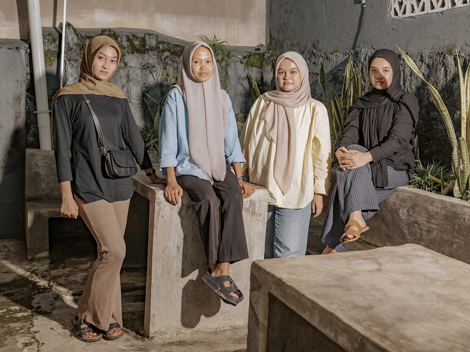 Kiri ke kanan: Azkiyah, Khusnul, Ariska dan Emy sedang kesulitan mendapatkan pekerjaan di Maros, Sulawesi Selatan karena lapangan kerja terbatas serta syarat kerja memberatkan. Selain itu, patriarki mengungkung Maros. Anak perempuan kerap tak diizinkan melanjutkan pendidikan tinggi di Kota Makassar. Selesai menamatkan SMA, mereka ikut dibebankan membantu keuangan keluarga. (Project M/Iqbal Lubis)