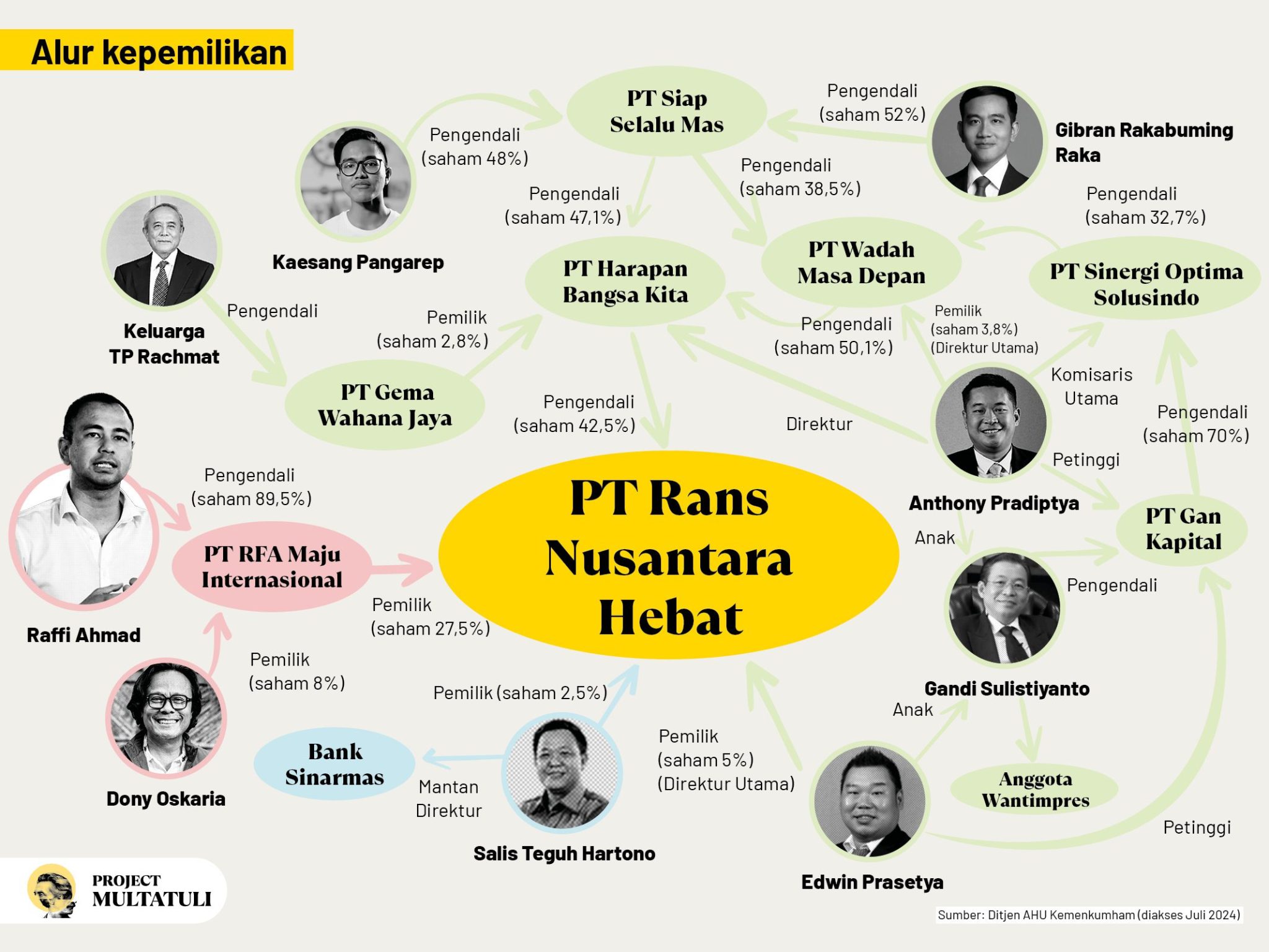 Namun, dari akta perusahaan yang kami akses pada Juli 2024, PT SATU sudah tidak tercatat lagi sebagai pemegang saham PT Rans Satu Bunda. Perusahaan dikendalikan oleh PT Rans Entertainmen Indonesia dengan kepemilikan 99,9% saham. Dan, PT Rans Bisnis Indonesia cuma memiliki 0,1% saham.