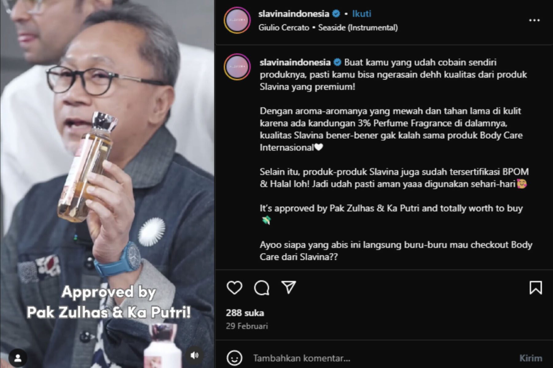 Raffi Ahmad dan Nagita Slavina memiliki bisnis kecantikan dengan jenama Slavina, yang mereka resmikan pada Desember 2023. Menteri Perdagangan dan Ketua Umum PAN, Zulkifli Hasan, turut mempromosikan merek ini.
