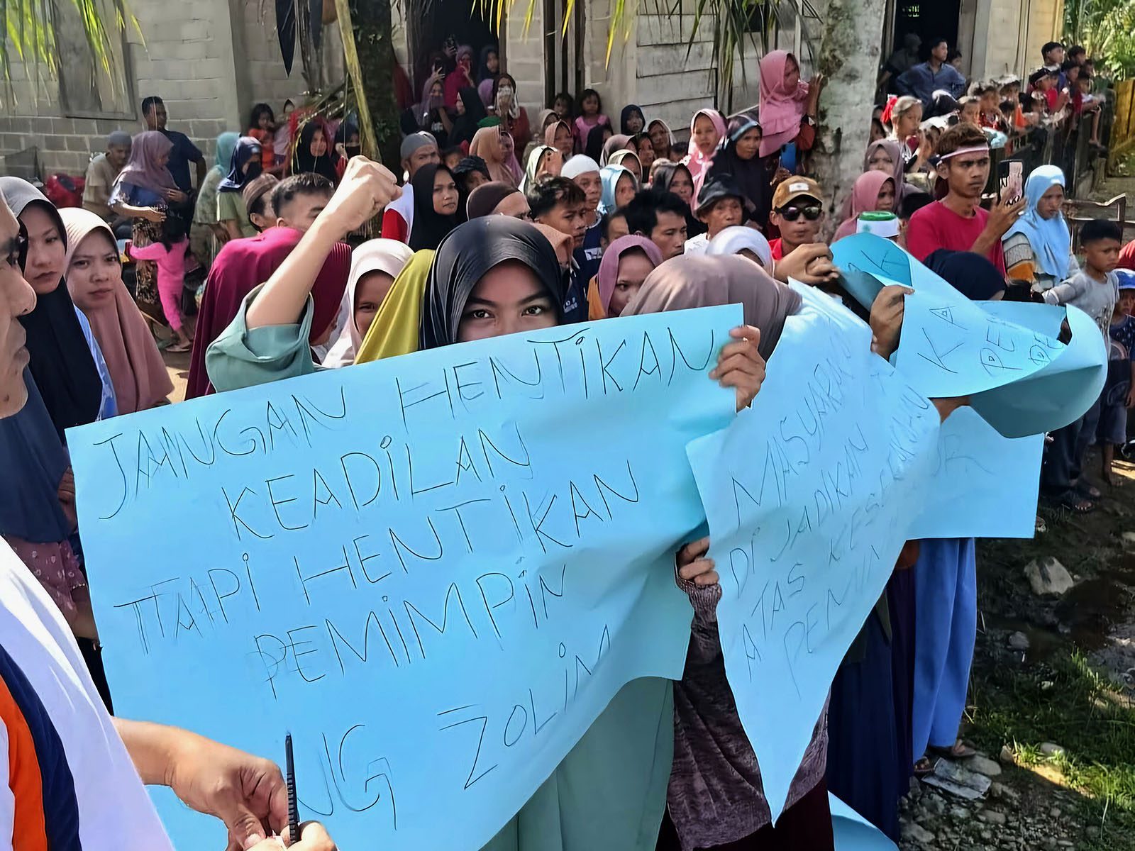 Desember 2022, warga tak lagi tinggal diam. Sejumlah warga dan pemuda dusun melakukan unjuk rasa di depan kantor rio yang saat itu bertepatan dengan kegiatan musyawarah rencana pembangunan daerah.