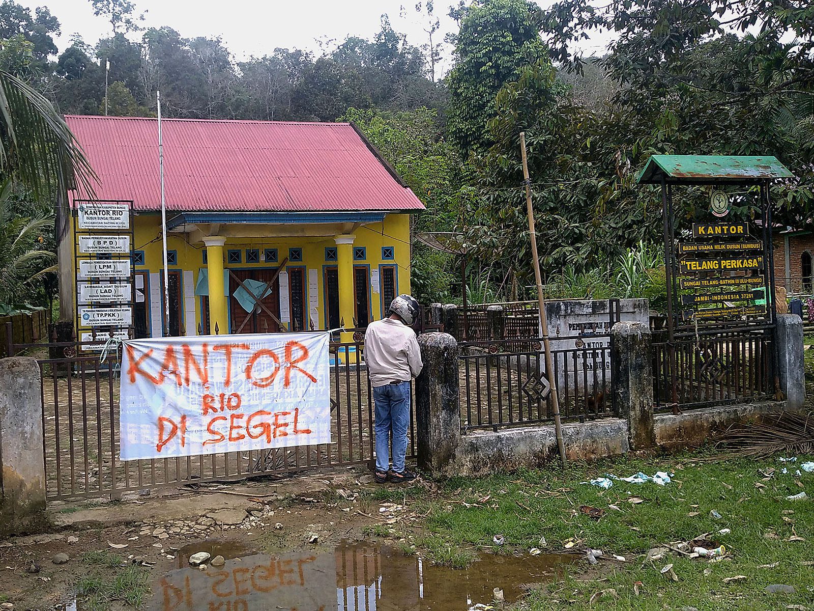 Sofwan (30), Sekretaris Dusun Sungai Telang juga Ketua Forum Bujang Raba, mengalami intimidasi yang membuatnya terpaksa mencabut laporannya dari KLHK.
