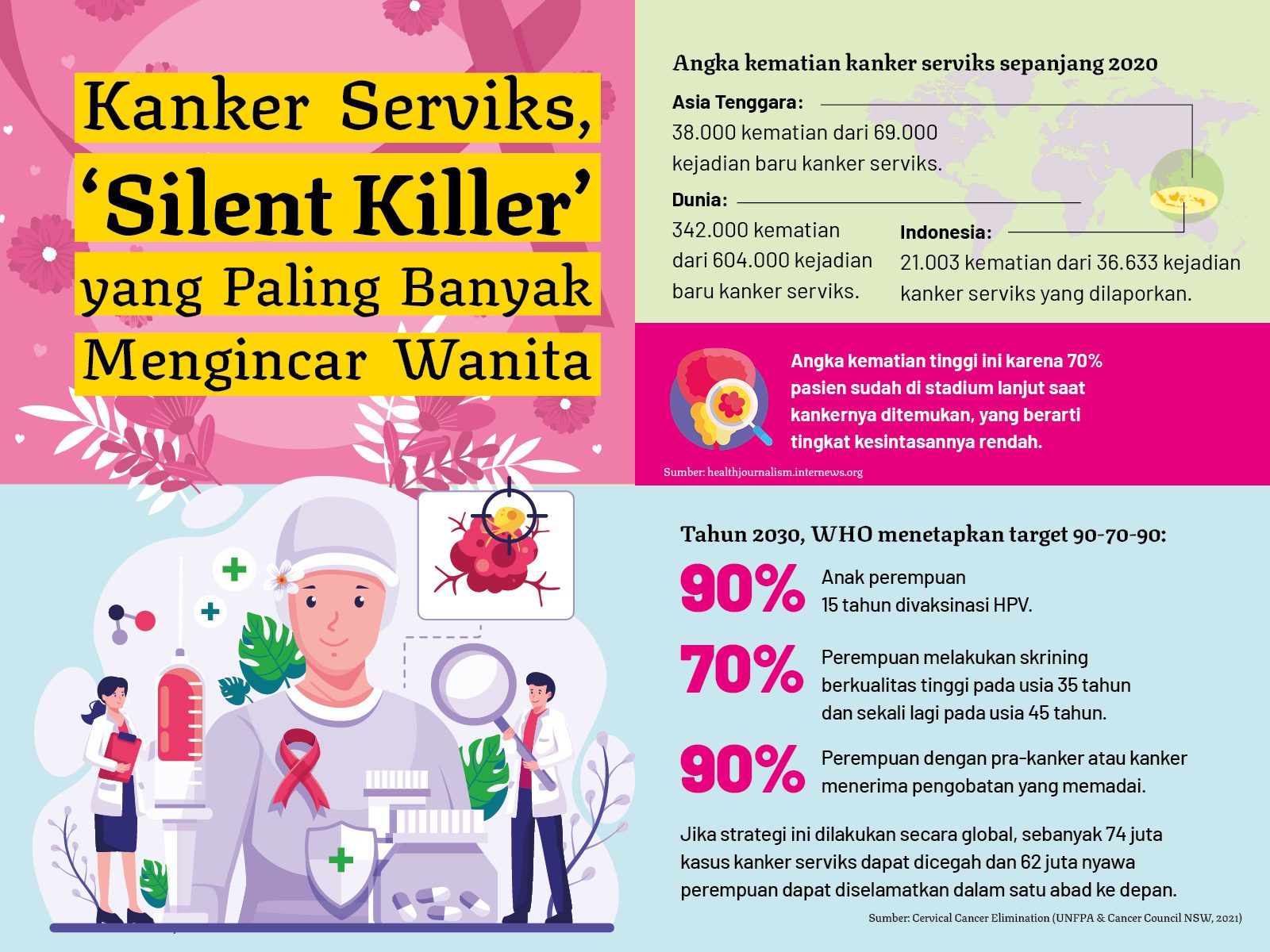 Dari 342.000 kematian akibat kanker serviks di dunia di 2020, 90 persennya terjadi di negara berpenghasilan rendah dan menengah. Gerakan global menengarai program vaksinasi menjadi salah satu upaya efektif mengurangi mahalnya biaya penyakit kanker serviks.