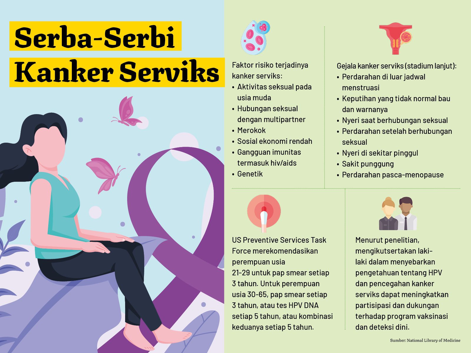 Keempat, kalaupun mereka punya BPJS Kesehatan, mereka biasanya bekerja di sektor informal yang sulit untuk meminta izin libur ke pemberi kerja. Kelima, tidak adanya dukungan keluarga atau bahkan suami yang tidak teredukasi tentang kanker serviks. Keenam, kalaupun bisa mengakses, belum tentu pelayanan yang didapat nyaman dan tanpa stigma.