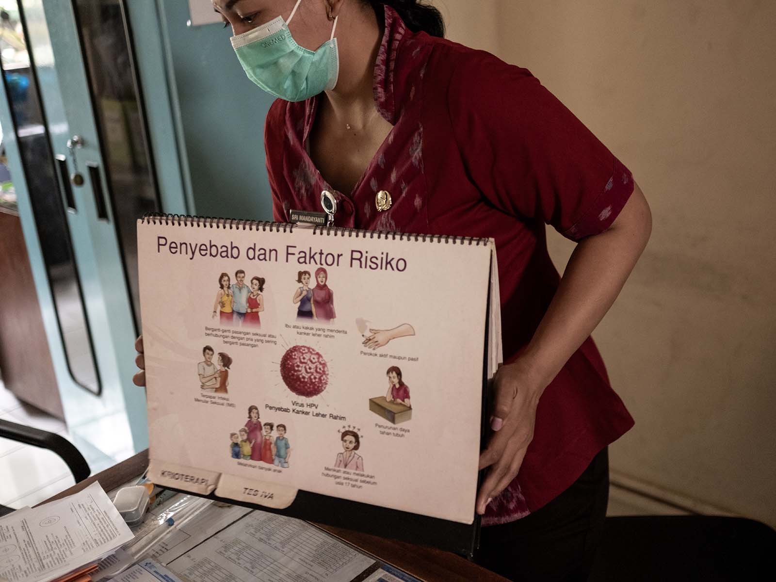 Puskesmas Denpasar Utara 1 di Bali, misalnya, dengan menggunakan Data Terpadu Kesejahteraan Sosial milik Kementerian Sosial, bekerja sama dengan desa dan kelurahan untuk jemput bola, membuat pengingat bagi perempuan-perempuan yang menjadi target skrining.