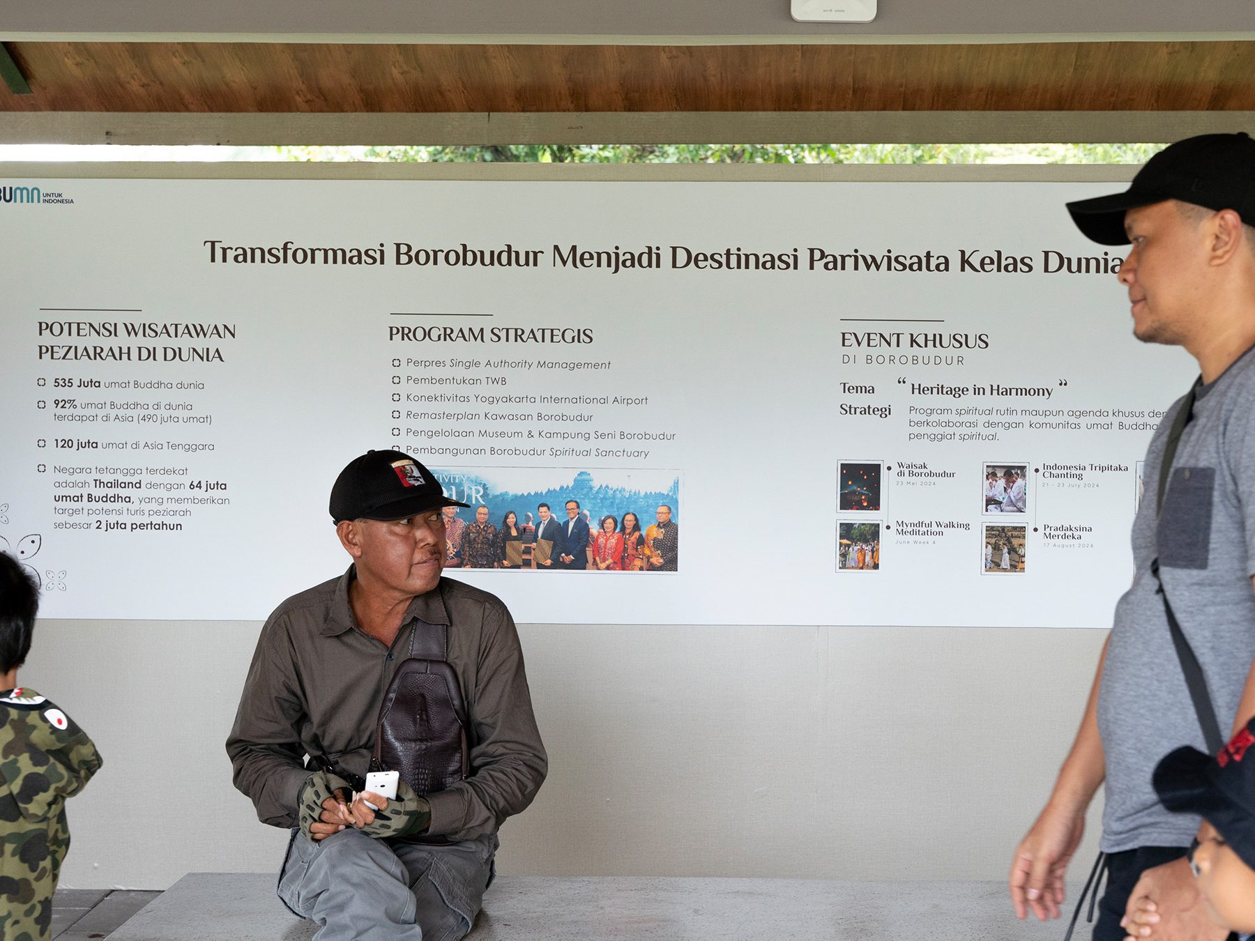 “Borobudur harus dihormati, diagungkan. Sisi lainnya adalah mereka yang datang ke Borobudur untuk melihat keindahan. Sebenarnya apa yang terjadi: pedagang itu ada, pedagang semakin besar karena akibat, bukan sebab,” tambahnya.