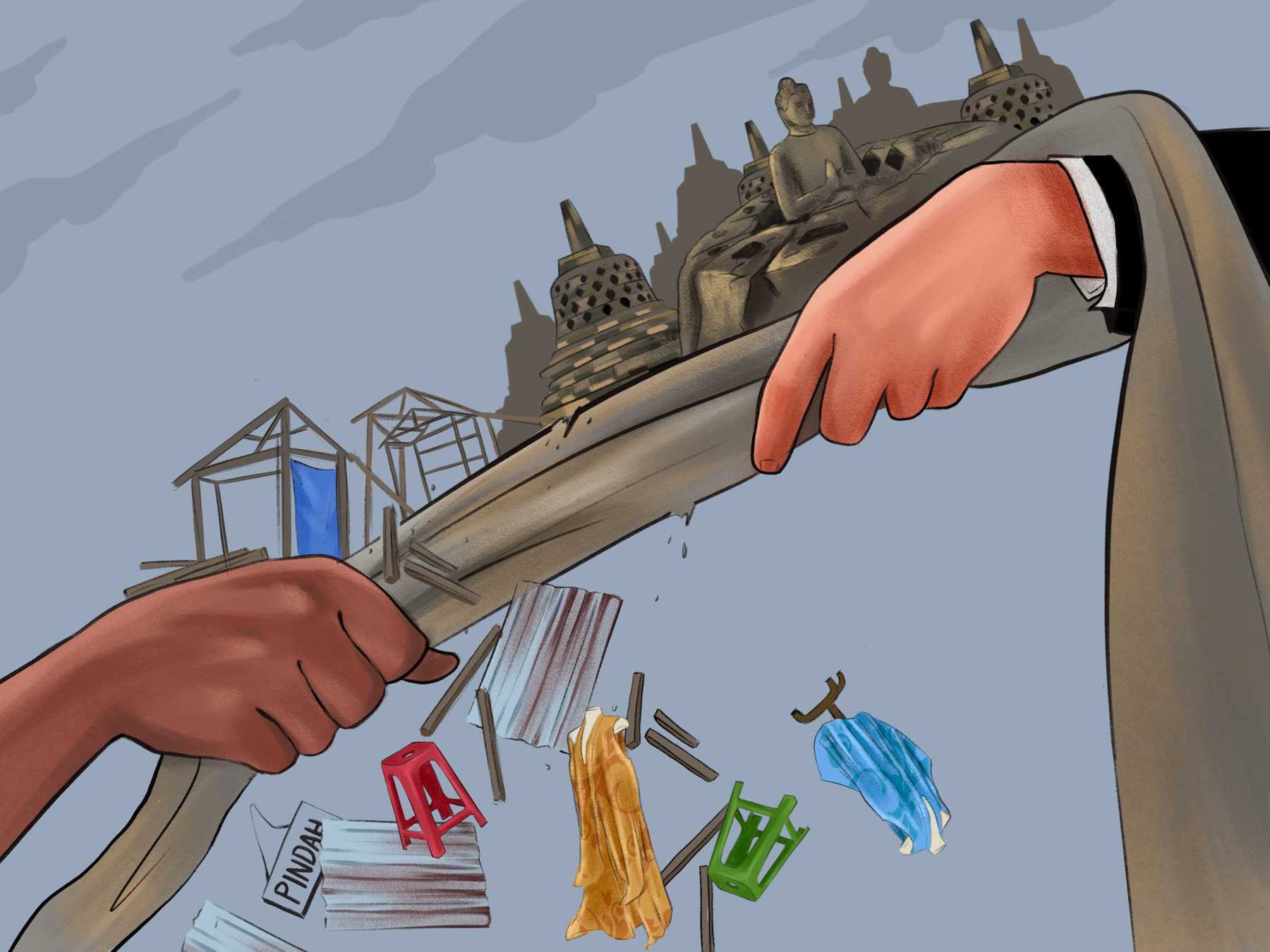Proyek strategis nasional kawasan pariwisata Borobudur menyingkirkan ratusan PKL yang menolak direlokasi. Para PKL yang mau direlokasi ke Pasar Seni Borobudur pun masih sepi pembeli. Hak ekonomi para pedagang diabaikan.