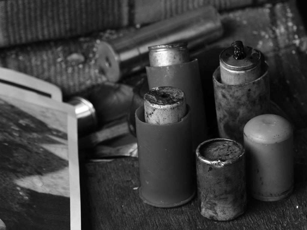 Beberapa proyektil gas air mata yang ditemukan warga Dago Elos. Polisi menembakkan gas air mata ke kerumunan warga dan pemukiman pada tanggal 14 Agustus 2023. Aksi itu membuat banyak warga terluka akibat panik berusaha menyelamatkan diri dari kepulan gas air mata. (Project M/Bukbis Candra Ismet Bay)