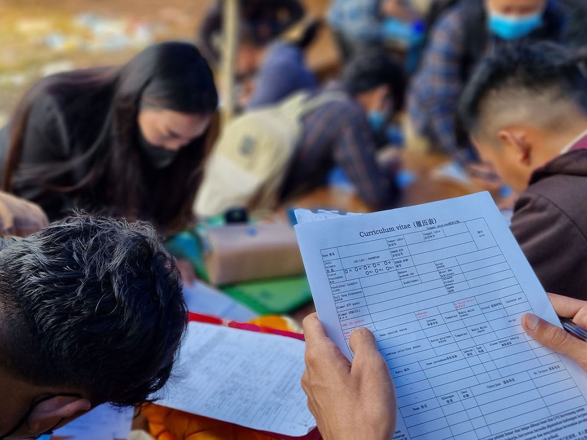 Para pekerja mengisi data calon pekerja untuk bisa bekerja di kawasan IMIP. (Project M/Muammar Fikrie)