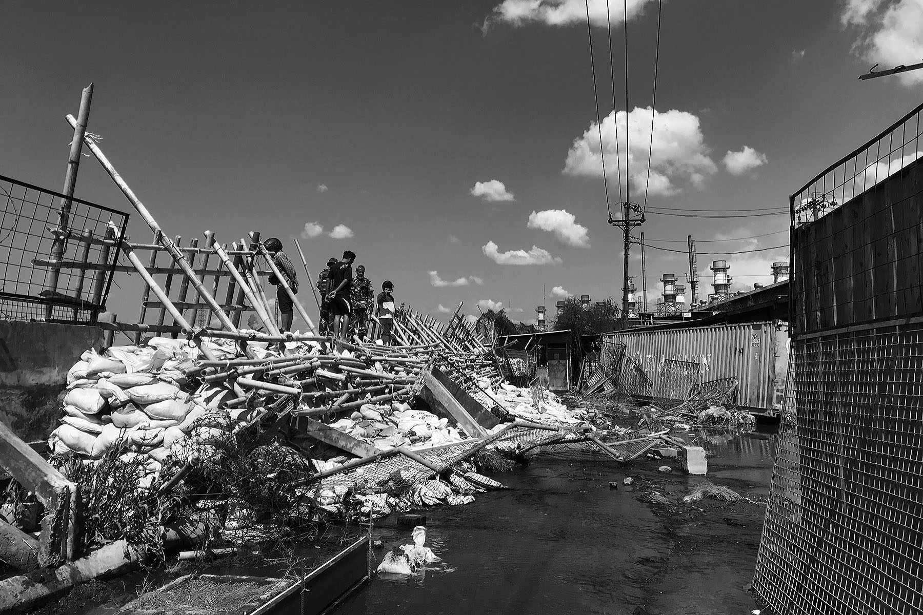 Saya menitipkan sepeda motor di depan masjid, lalu menggulung celana hingga di atas lutut, kemudian berjalan menghampiri Rokah, menerjang banjir rob yang sudah bercampur sampah dan berminyak yang seketika bikin kaki saya gatal-gatal. Sepanjang gang, tak ada siapa pun yang lewat.