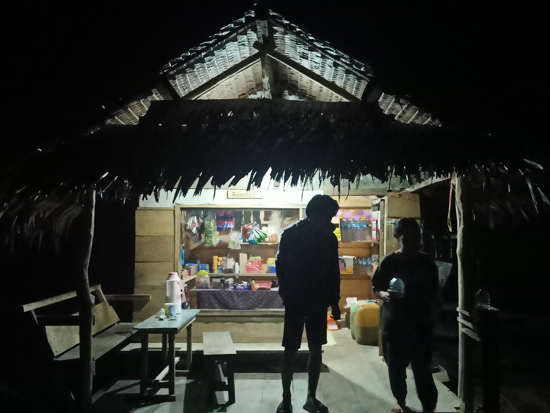 Warga berbelanja di sebuah warung kecil di Dusun Malelet, Desa Madobak, Kecamatan Siberut Selatan, Kepulauan Mentawai. Kegagalan proyek PLTBm dengan janji listrik 24 jam jauh dari kenyataan. Saat ini warga menikmati aliran listrik mulai pukul 5 sore, dan padam pada pukul 12 malam. (Project M/Yose Hendra)
