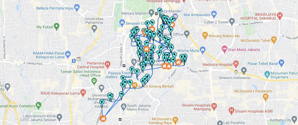 Saya terus tancap gas hingga berhasil mengirim 37 barang pada pukul 19.12. Rinciannya, 36 paket saya antar sendiri dan satu dibantu kurir senior. Masih tersisa tiga paket lagi dengan tujuan Menara Sudirman, Bendungan Hilir, dan Pondok Aren.