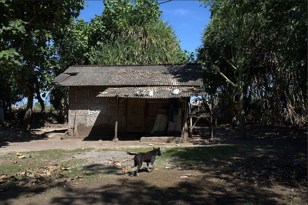 Salah satu rumah warga yang berada di lahan kosong dekat dengan pantai. Warga, yang mayoritas petani, peternak, dan nelayan, memutuskan pindah dari rumah relokasi permanen mereka di Dusun Ngolang karena keterbatasan lahan dan akses ke sumber penghidupan yang semakin jauh. (Project M/Adi Renaldi)