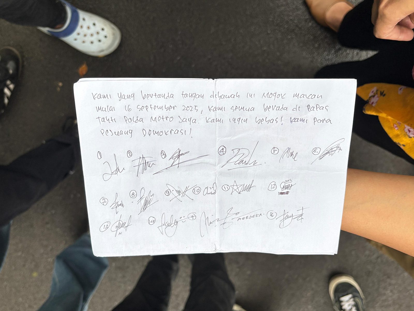 Jalanan mulai sepi dari aksi demonstrasi setelah sepanjang sepekan pada akhir Agustus 2025 menjadi mimbar bebas publik mengutarakan pendapat. Namun, di balik itu, polisi menangkap ribuan orang, menahan ratusan, dan menetapkan puluhan tersangka. Polisi memburu mahasiswa, pelajar, warga biasa, seniman, pekerja kantoran, bahkan anak di bawah umur.Ā