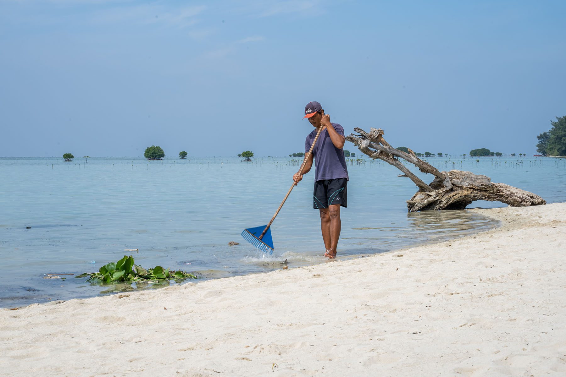 Kondisi itu memaksa Arif dan warga lain yang terdampak, bergantung pada pasokan air bersih yang dipasok oleh Dinas SDA. Di bagian tengah pulau, Dinas SDA mendirikan stasiun desalinasi dari sumur air payau. Air desalinasi dijual seharga Rp500 per galon ke masyarakat yang membutuhkan.