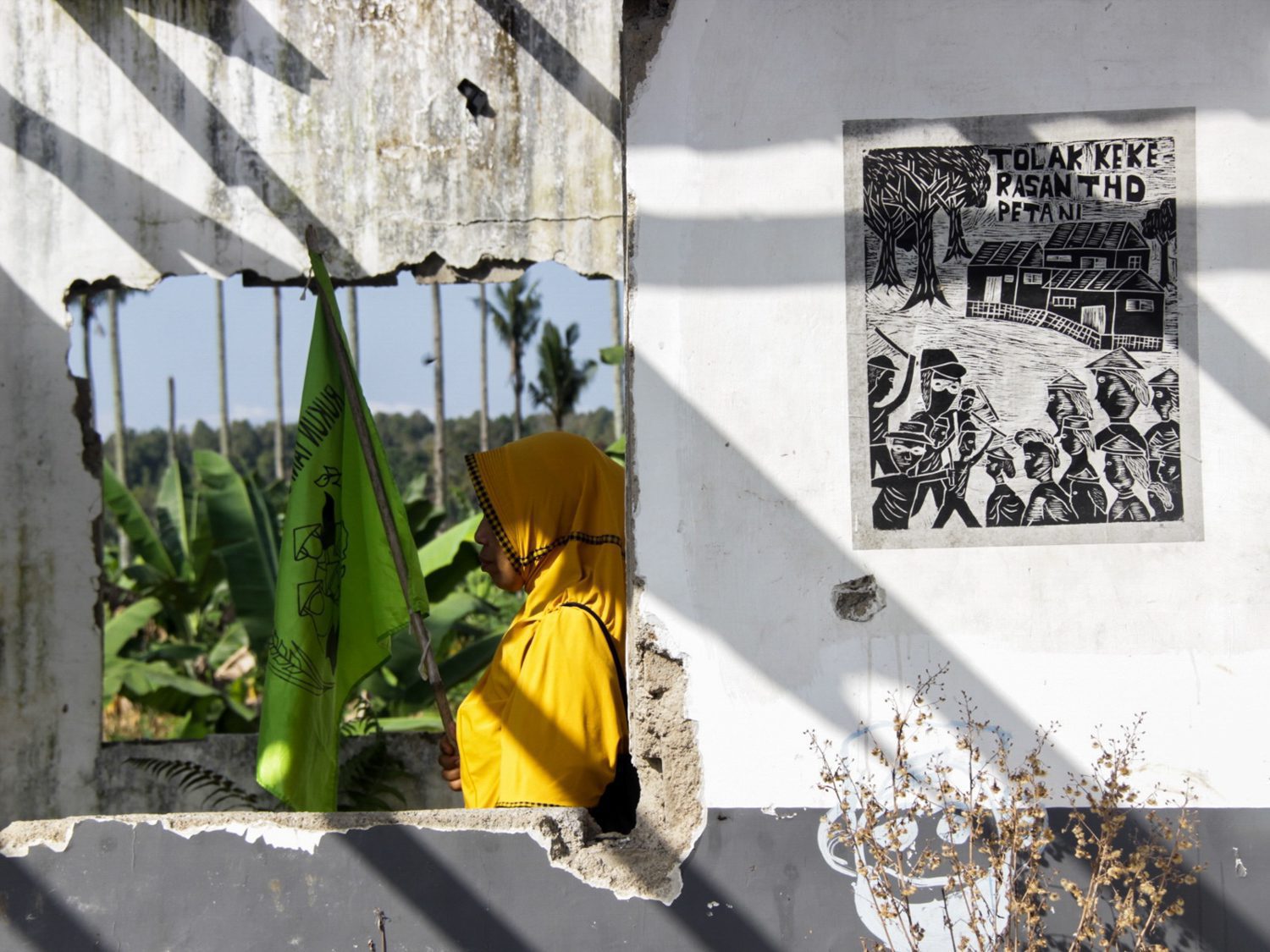 SATU MALAM pada akhir September, warga berkumpul di Posko Perjuangan. Mereka duduk melingkar di dalam bangunan semi permanen berdinding terbuka yang sebagiannya menghadap ke arah kebun di atas lahan sengketa. “Nah, kira-kira kalo misalnya, nanya sekali lagi, menurut bapak-bapak, ibu-ibu,…